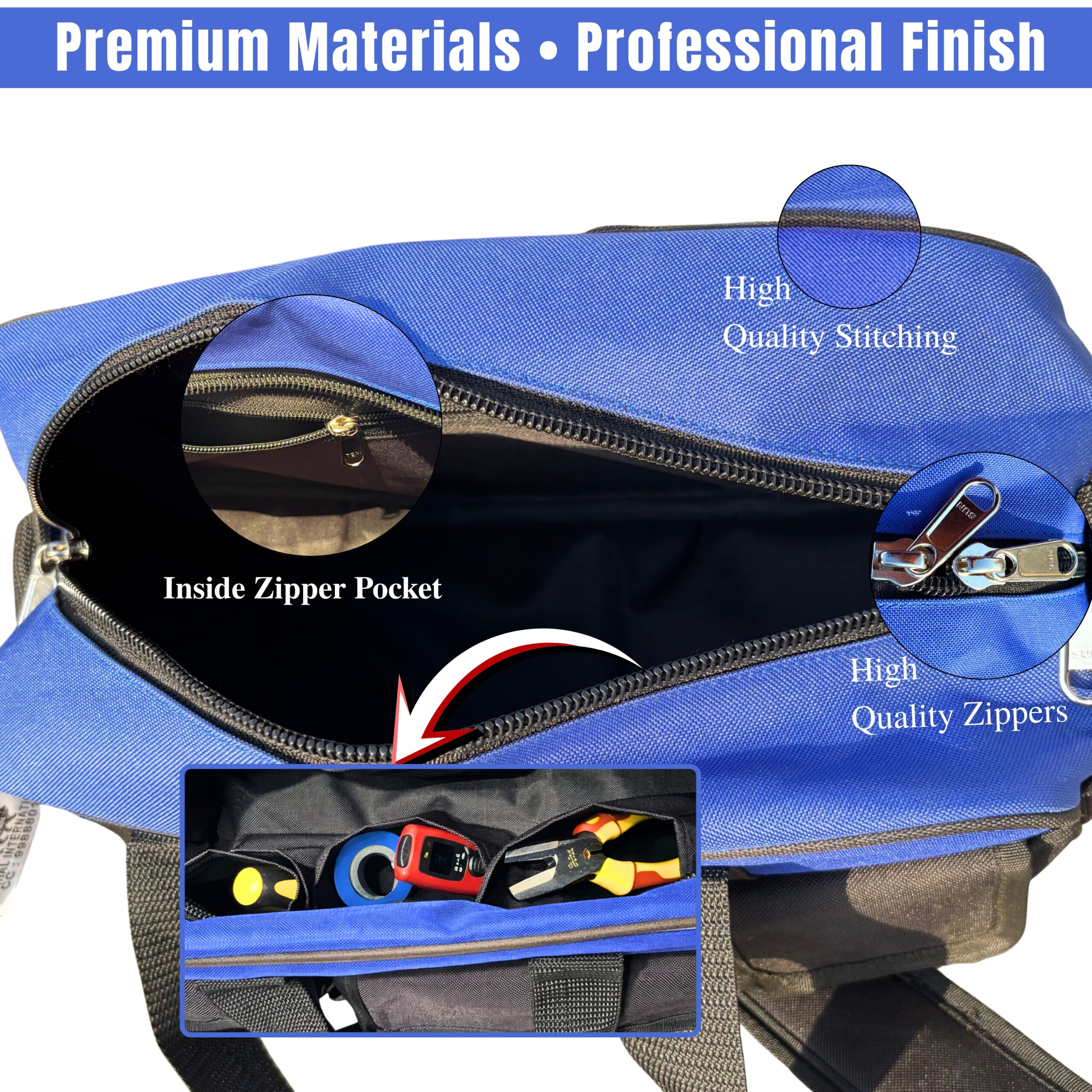 - Professional Tools Bag Portable Nylon Canvas Heavy Tool Storage Bag Contractor Hardware Case Mulpockets Electrician Bag – Blue