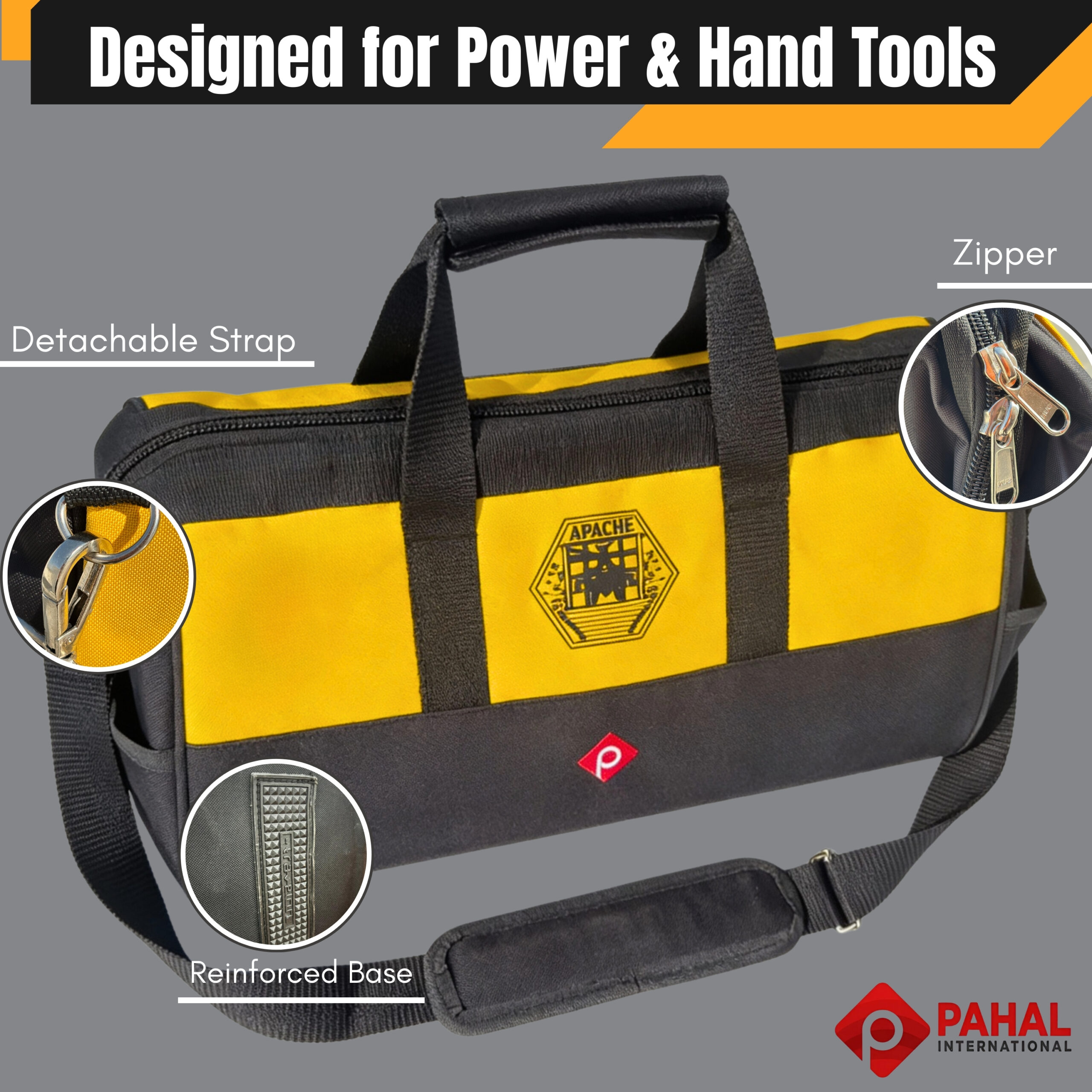 PAHAL INTERNATIONAL has a reputation for excellence, reliability, and innovation. This multi-purpose tool bag is made with waterproof and durable material. It keeps the tools safeguarded. It also enables easy portability of essential tools to the work site.This heavy-duty tool bag is designed to offer complete convenience to the user. The bag can be used to carry essential tools to the work site with ease. It is ideal for carrying compact machinery, power tools, hand tools, and more