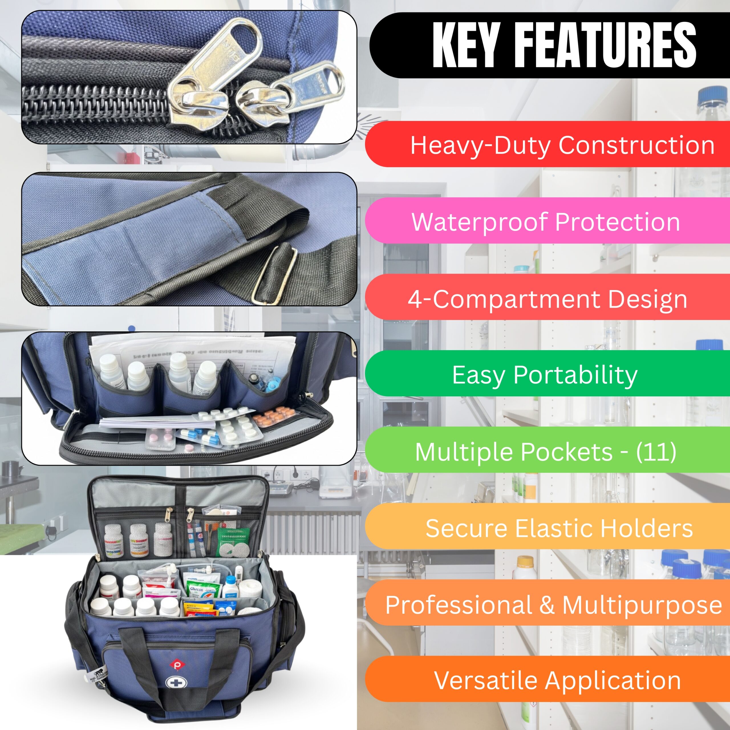 - Humanized Structure With 4 compartment, Multi Pockets 8 (Inside & Outside), Elastics strips of hold tool the medical bag perfectly separate, hold and classify your medicines.